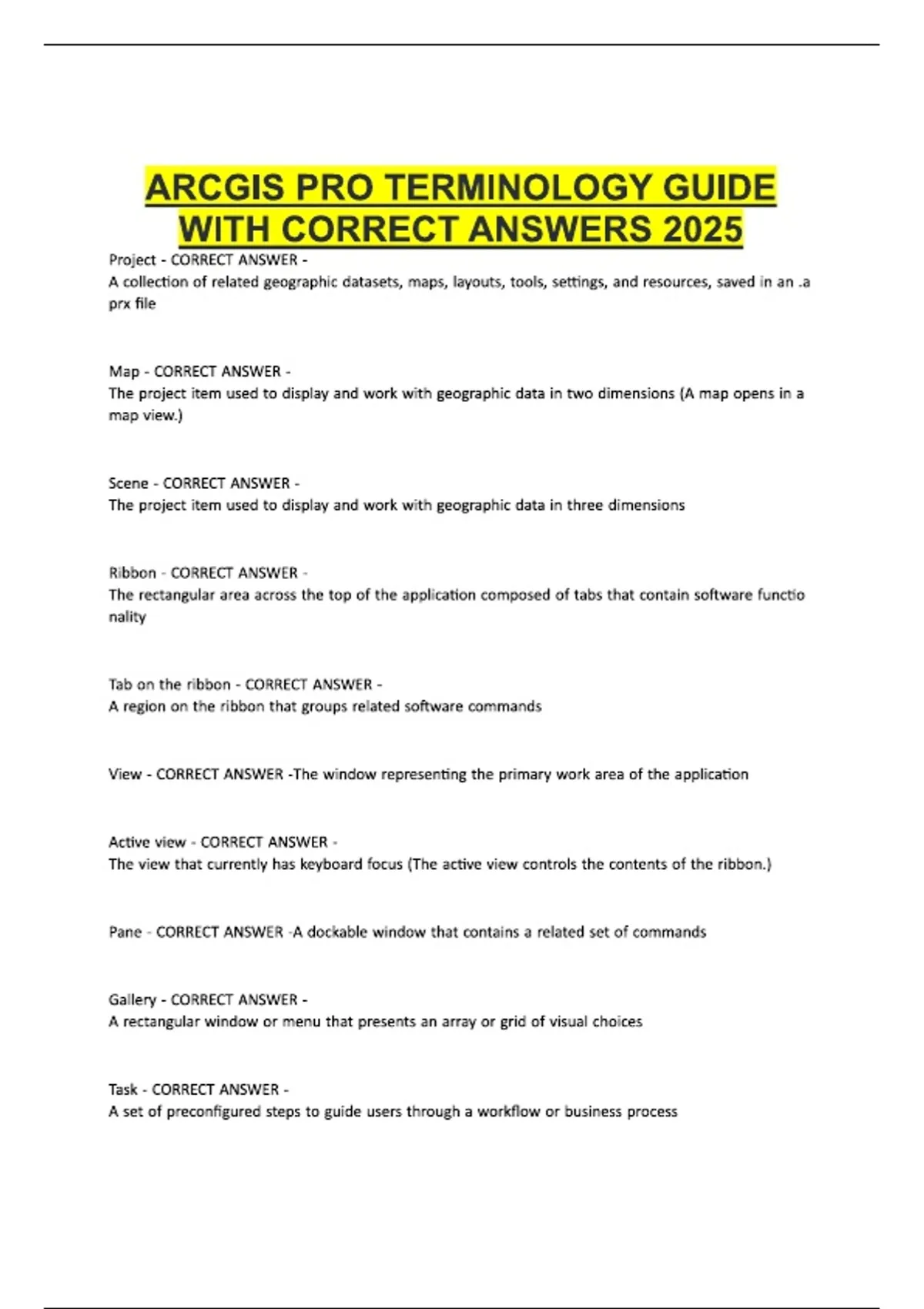 ARCGIS PRO TERMINOLOGY GUIDE WITH CORRECT ANSWERS