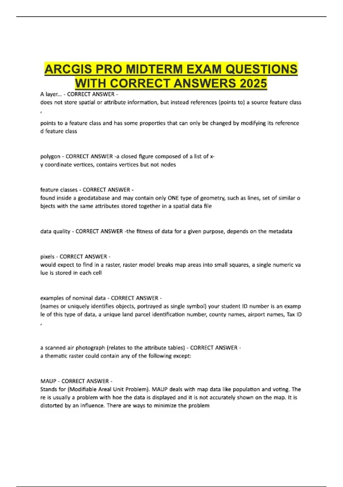ARCGIS PRO MIDTERM EXAM QUESTIONS WITH CORRECT ANSWERS