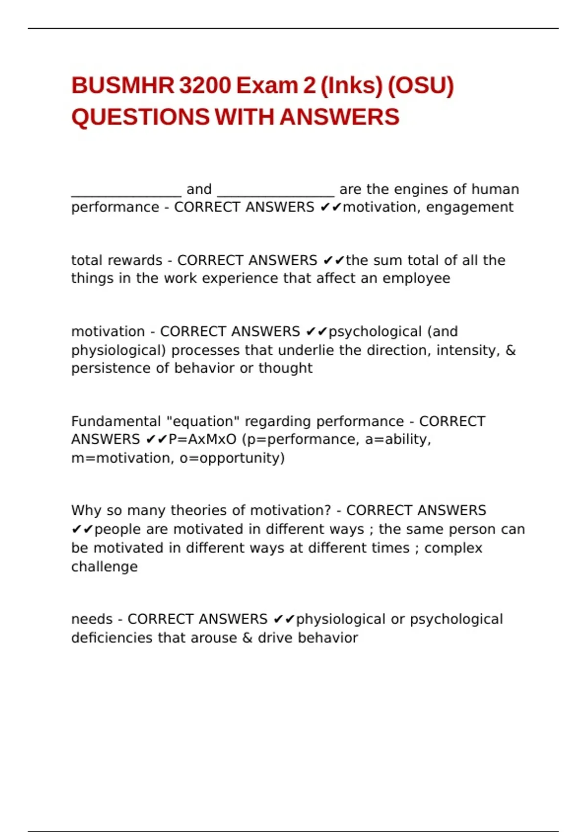 ANSWERS ✔✔Core Job Characteristics --> Critical Psychological