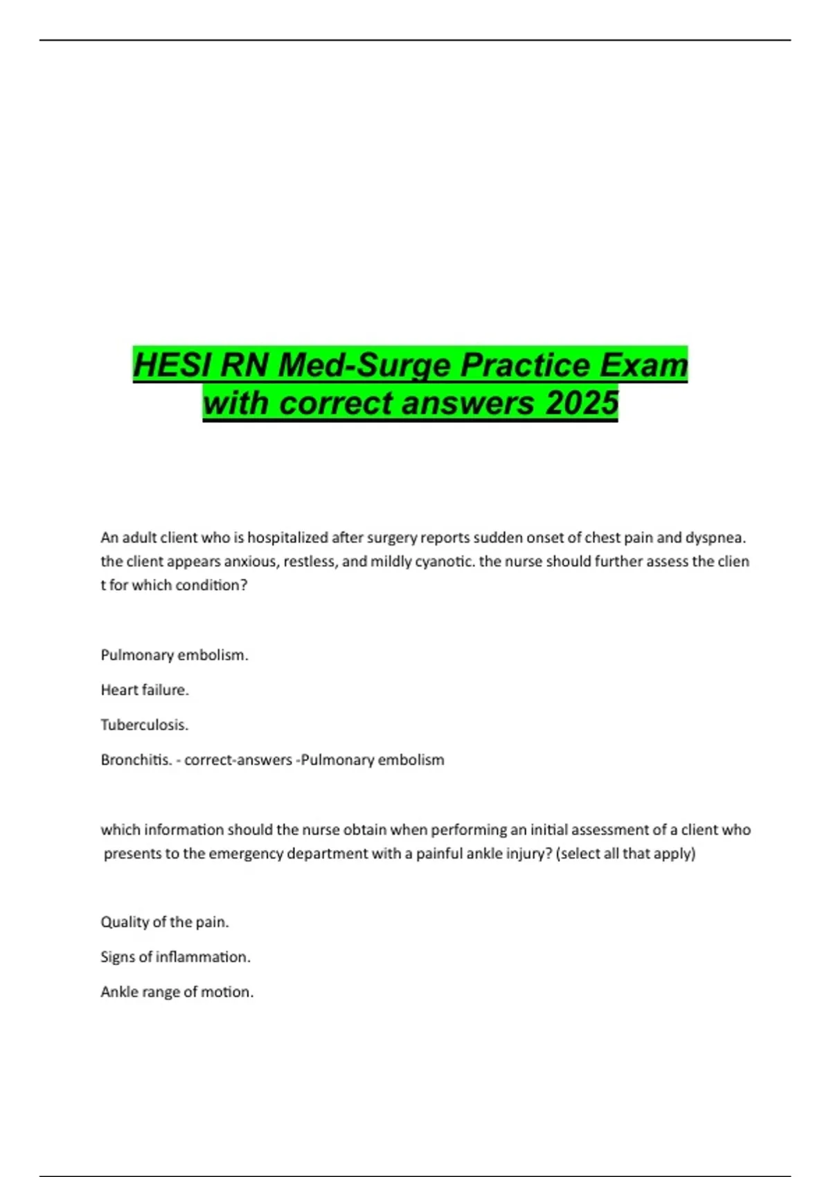 HESI RN Med-Surge Practice Exam