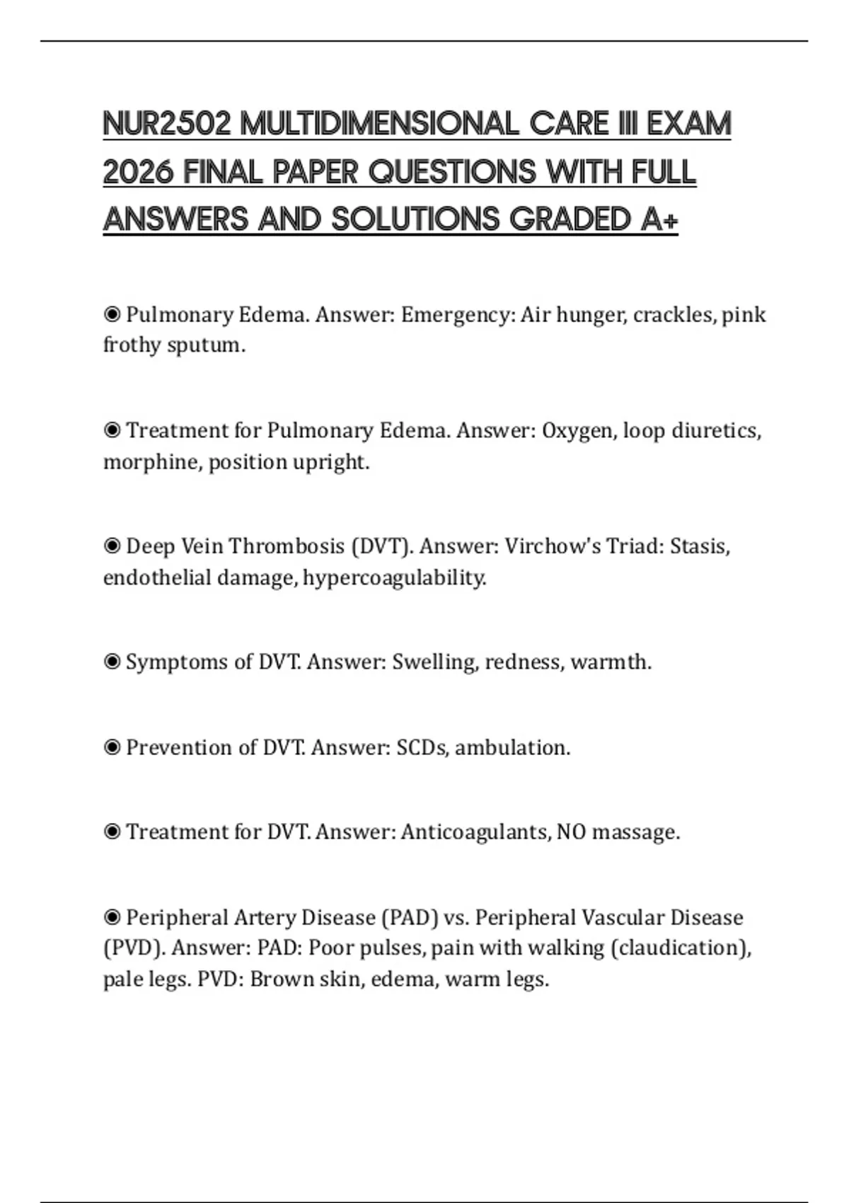 NUR2502 MULTIDIMENSIONAL CARE III EXAM 2026 FINAL PAPER QUESTIONS WITH FULL ANSWERS AND SOLUTIONS GRADED A+