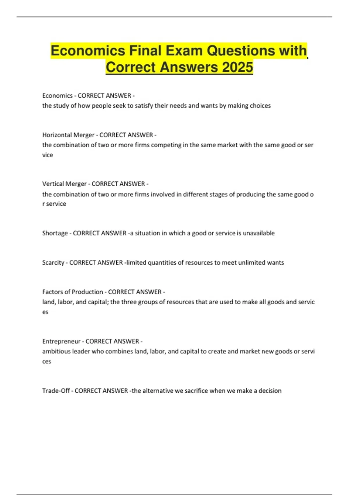 Economics - CORRECT ANSWER -
