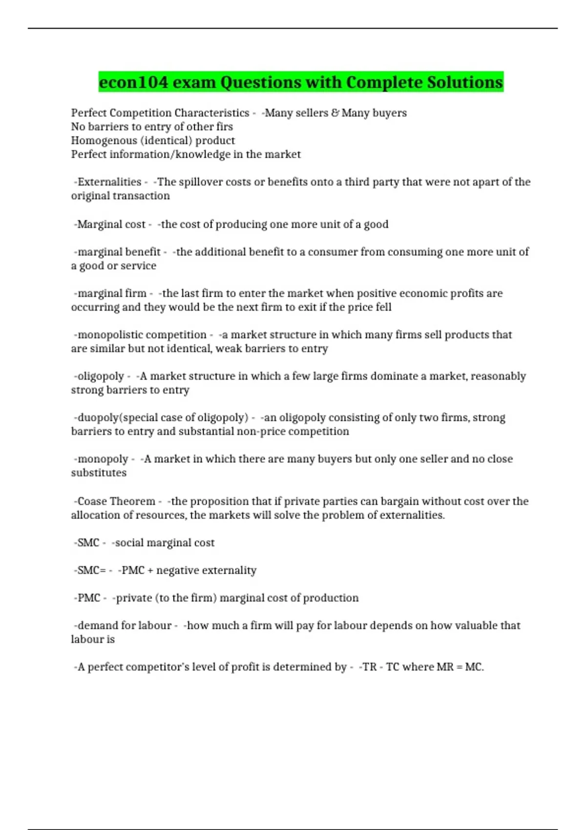 econ104 exam Questions with Complete Solutions