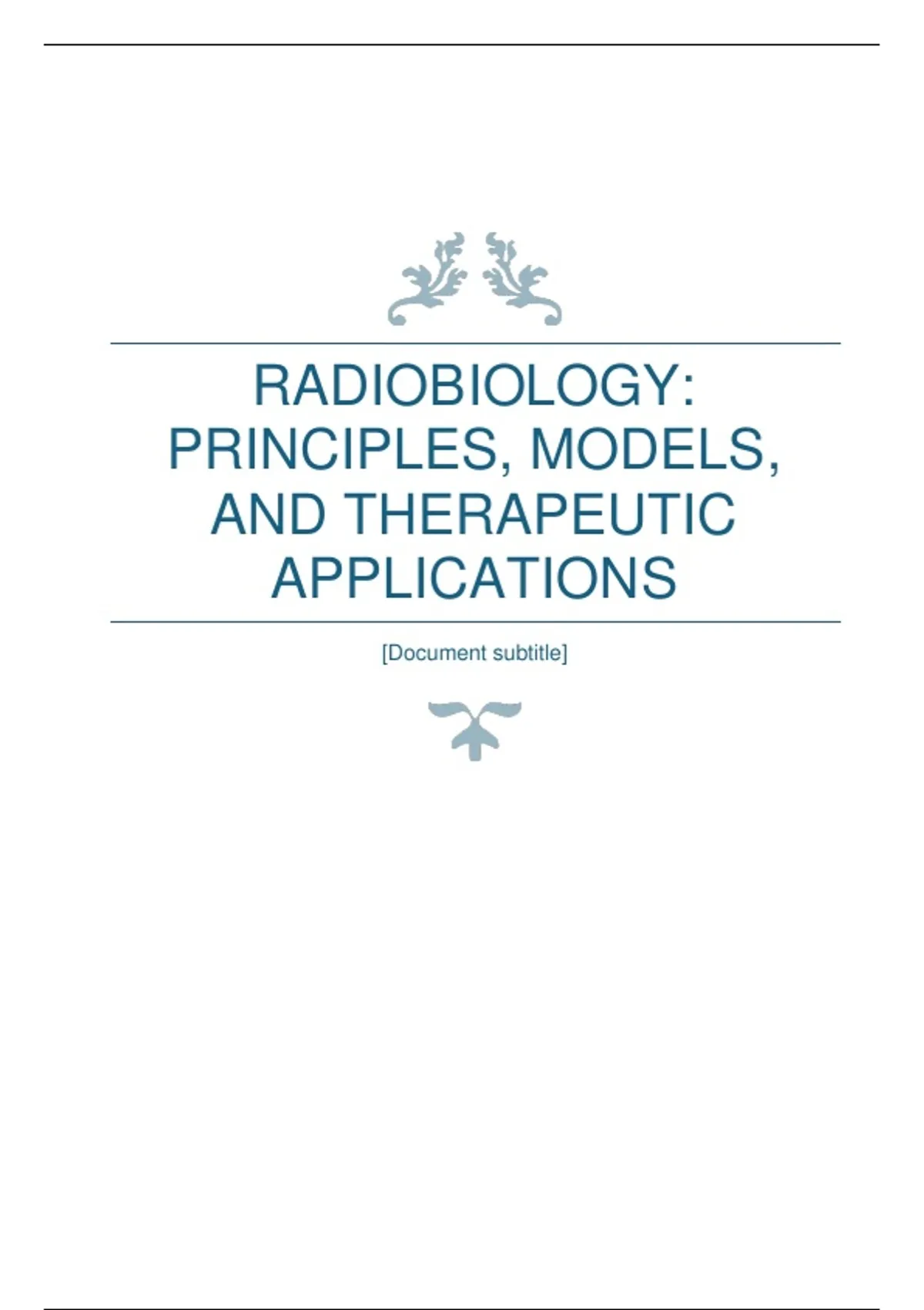 This document provides a comprehensive summary of core radiobiology concepts, covering the mechanisms of radiation interaction with biological systems, molecular and cellular damage, and DNA repair pathways. It also includes detailed explanations of survival curves, radiosensitivity, deterministic and stochastic effects, tumor radiobiology, fractionation principles, radiation syndromes, fetal sensitivity, and high-LET/modern radiotherapy modalities. Additional sections outline dose-response models, biomarkers, protective agents, and current research topics such as bystander effects, FLASH radiotherapy, and genomic instability. It serves as a complete, structured reference for exam preparation or course review.