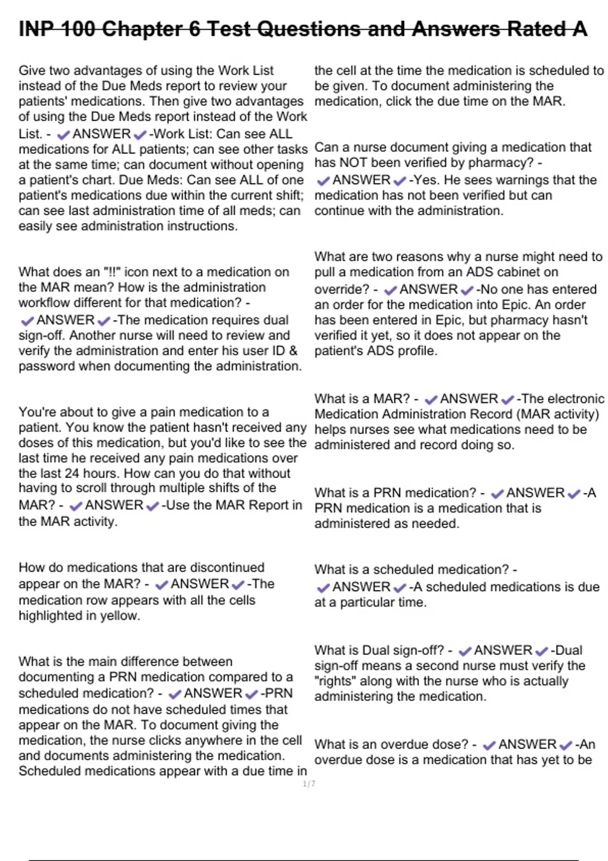 INP 100 Chapter 6 Test Questions and Answers Rated A