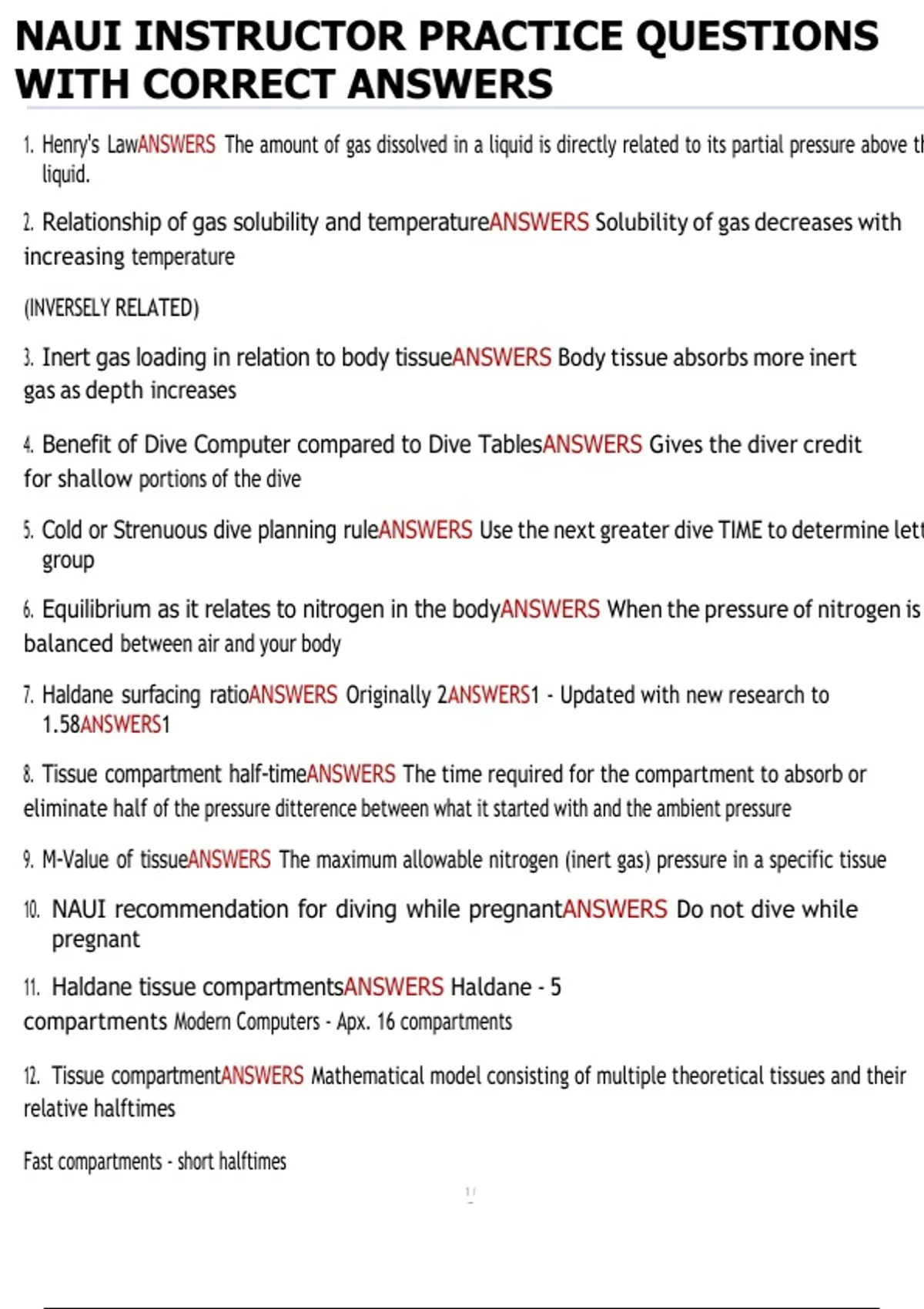 NAUI INSTRUCTOR PRACTICE QUESTIONS