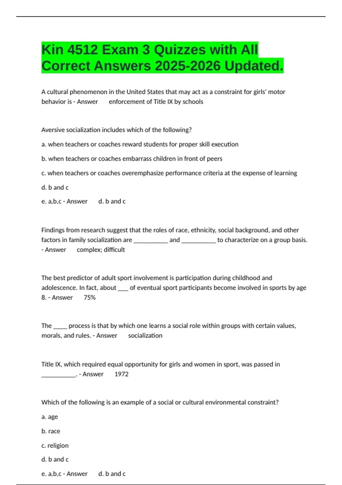 Correct Answers 2025-2026 Updated.