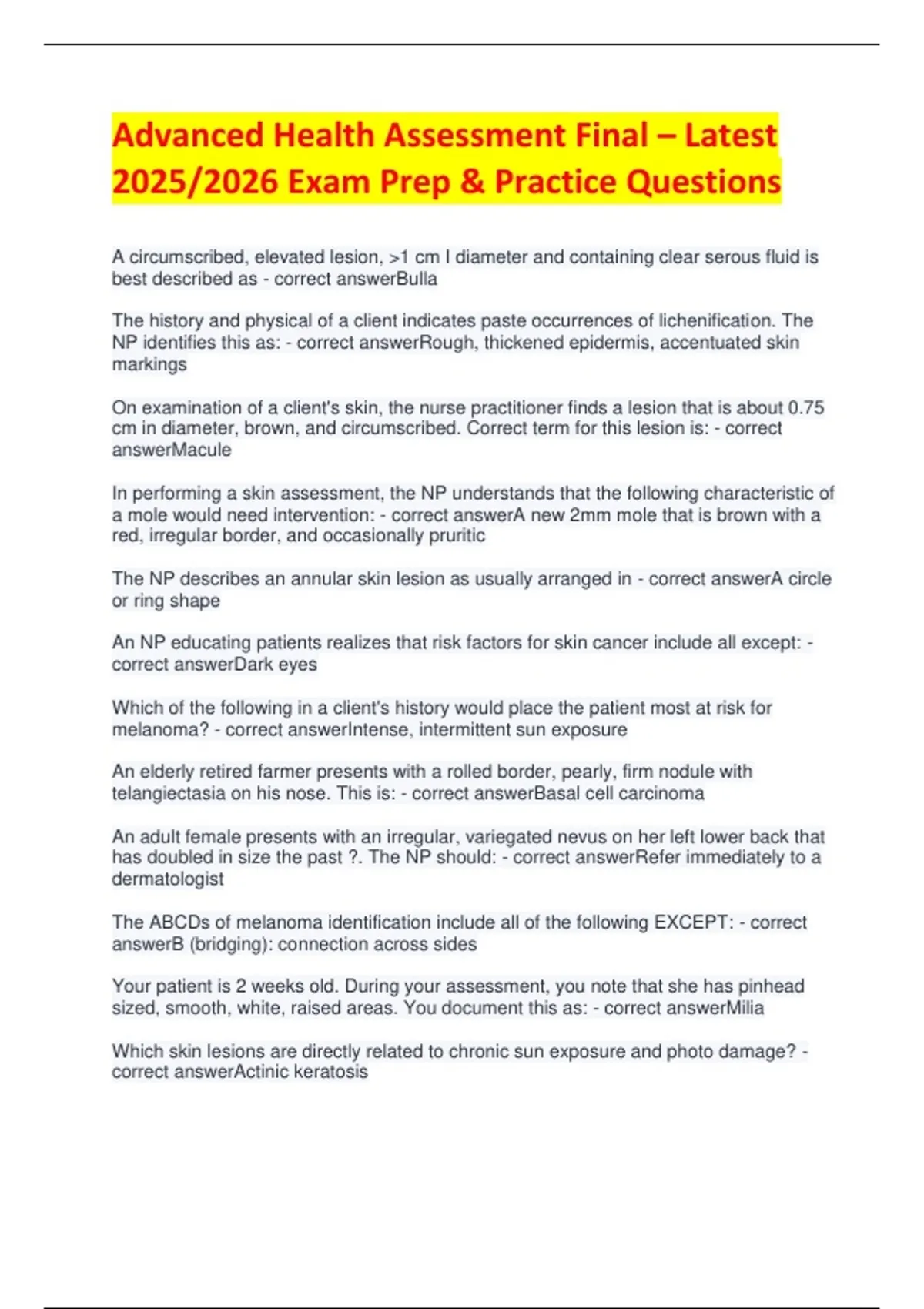 2025/2026 Exam Prep & Practice Questions
