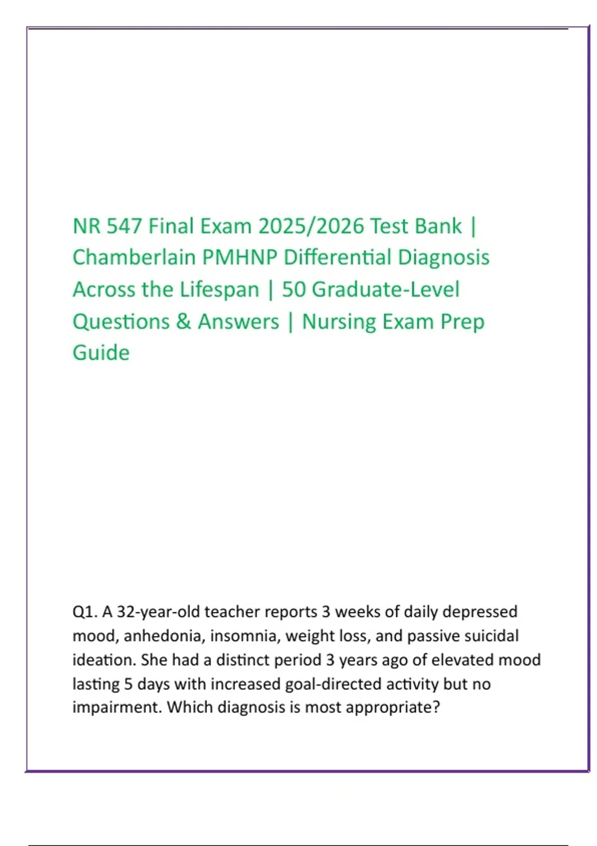 Q1. A 32-year-old teacher reports 3 weeks of daily depressed