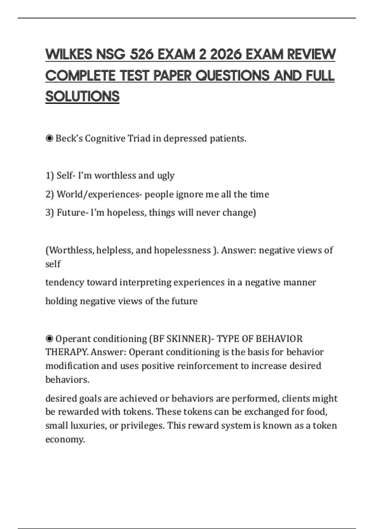 WILKES NSG 526 EXAM 2 2026 EXAM REVIEW COMPLETE TEST PAPER QUESTIONS AND FULL SOLUTIONS