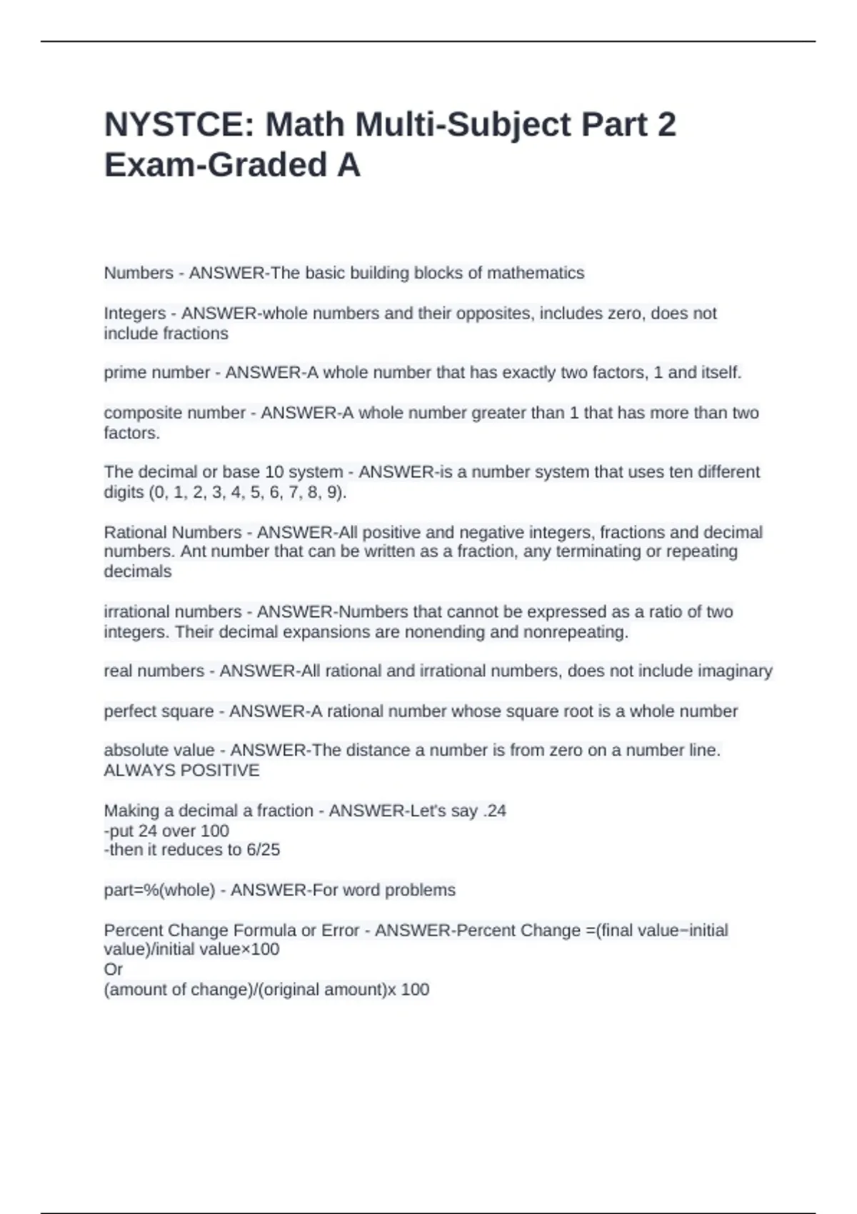 NYSTCE Math Multi-Subject Part 2 Exam-Graded A