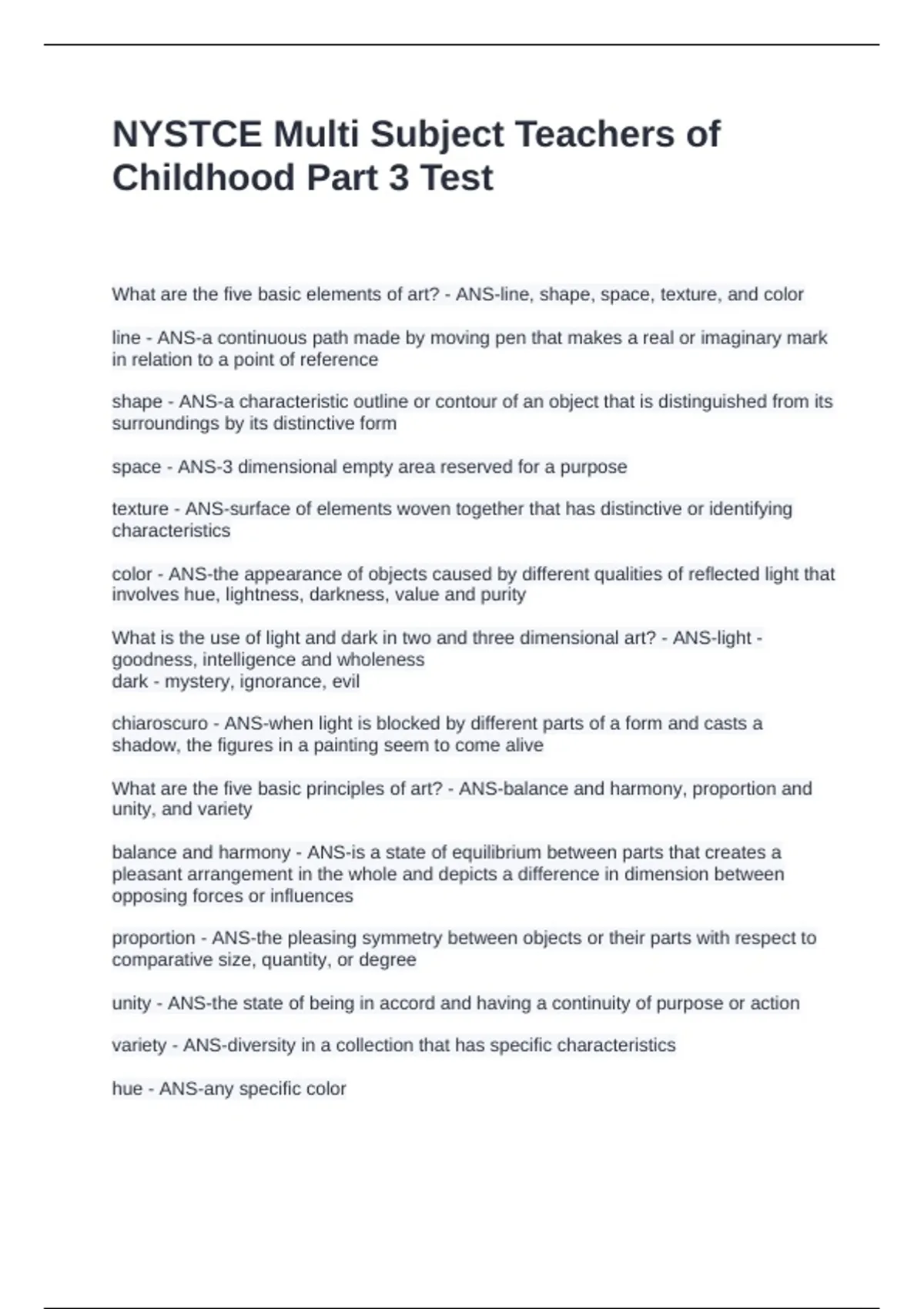 NYSTCE Multi Subject Teachers of Childhood Part 3 Test