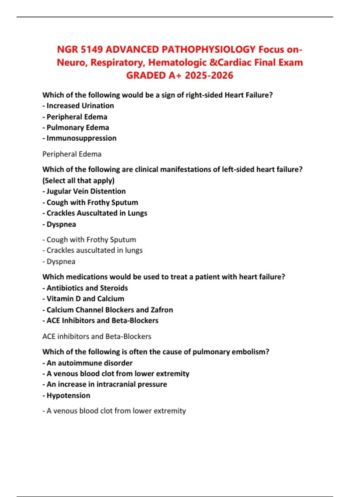 NGR 5149 ADVANCED PATHOPHYSIOLOGY Focus on-