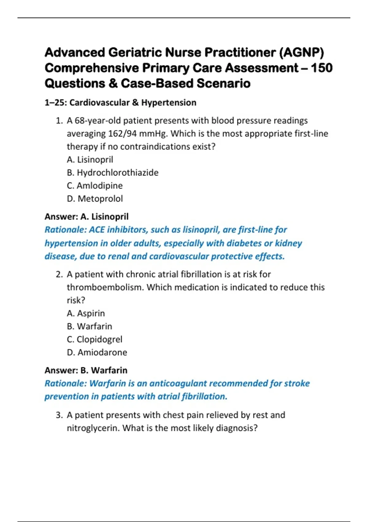 1. A 68-year-old patient presents with blood pressure readings