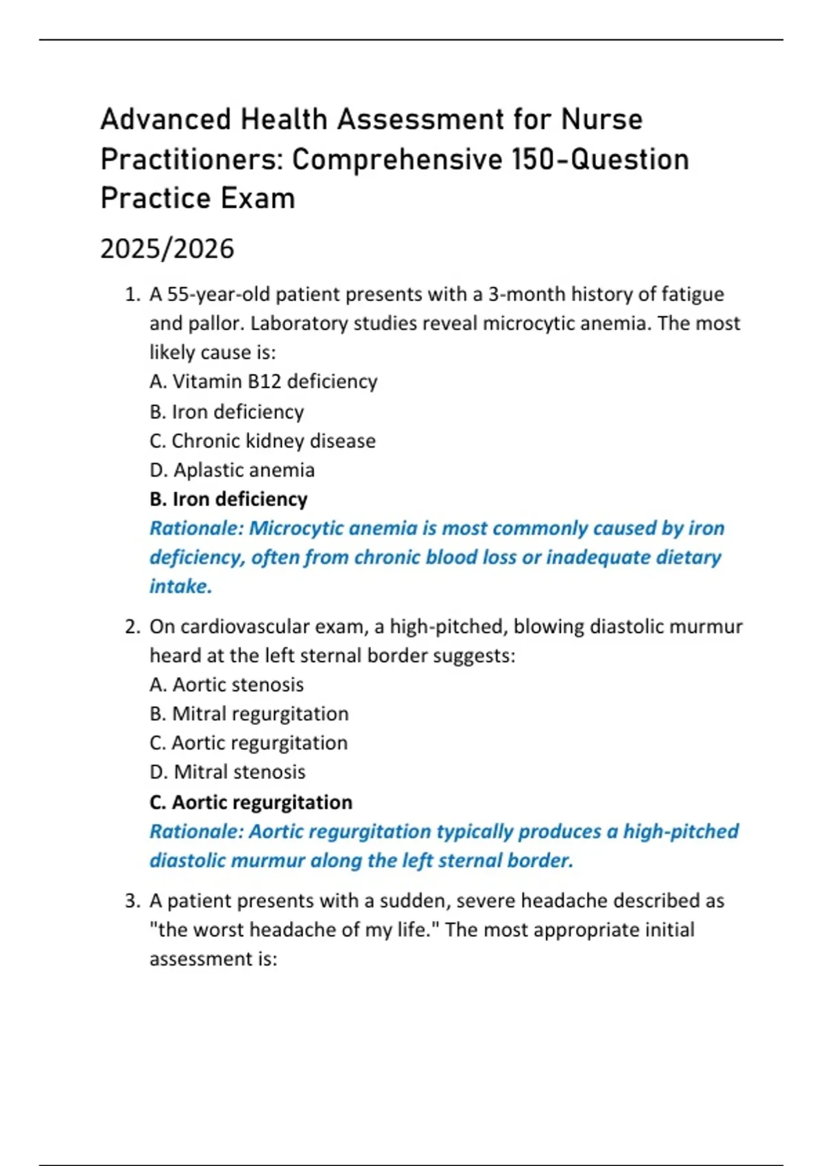 1. A 55-year-old patient presents with a 3-month history of fatigue