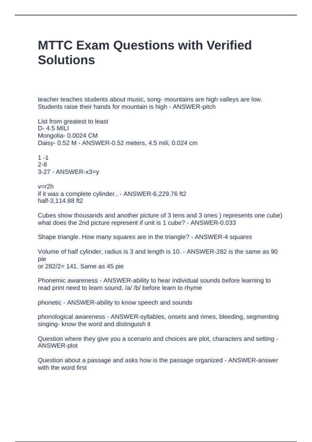 MTTC Exam Questions with Verified
