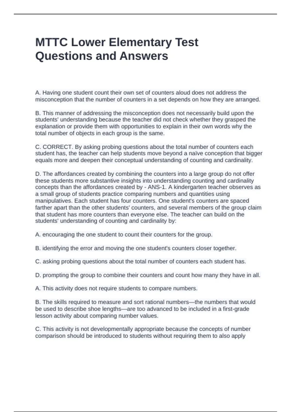 C. CORRECT. By asking probing questions about the total number of counters each