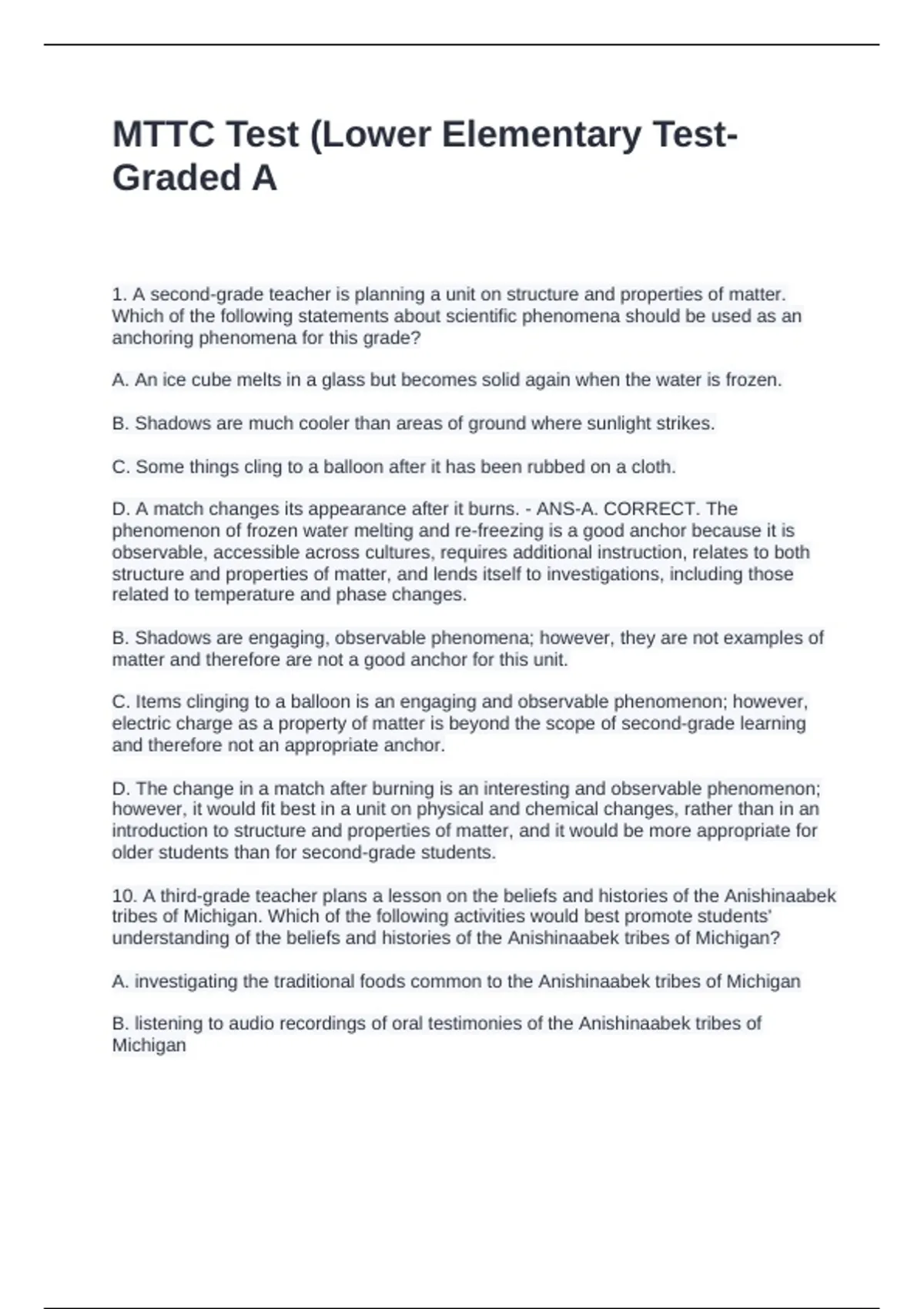 D. A match changes its appearance after it burns. - ANS-A. CORRECT. The