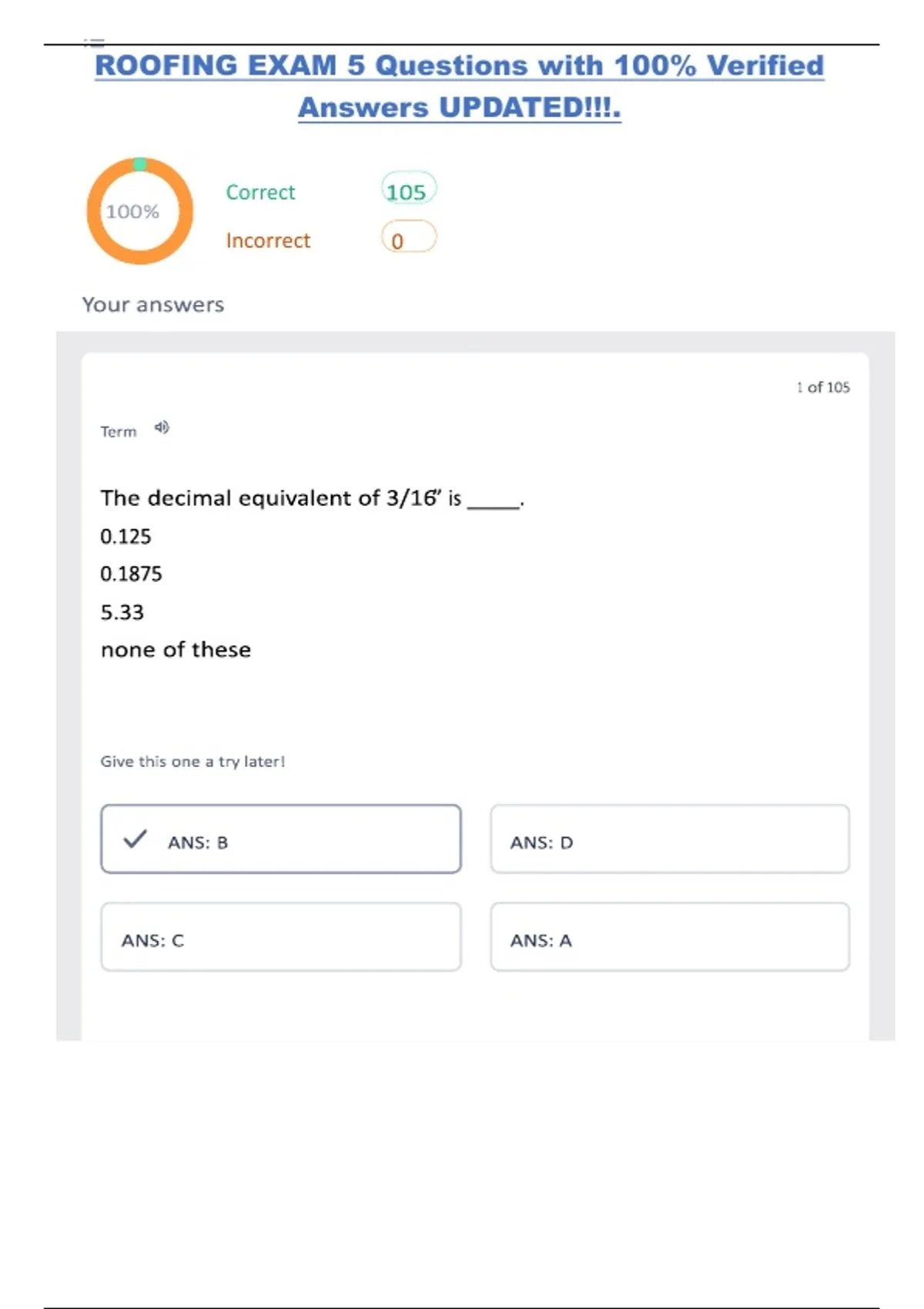 roofing exam 5 questions with 100 verified answer