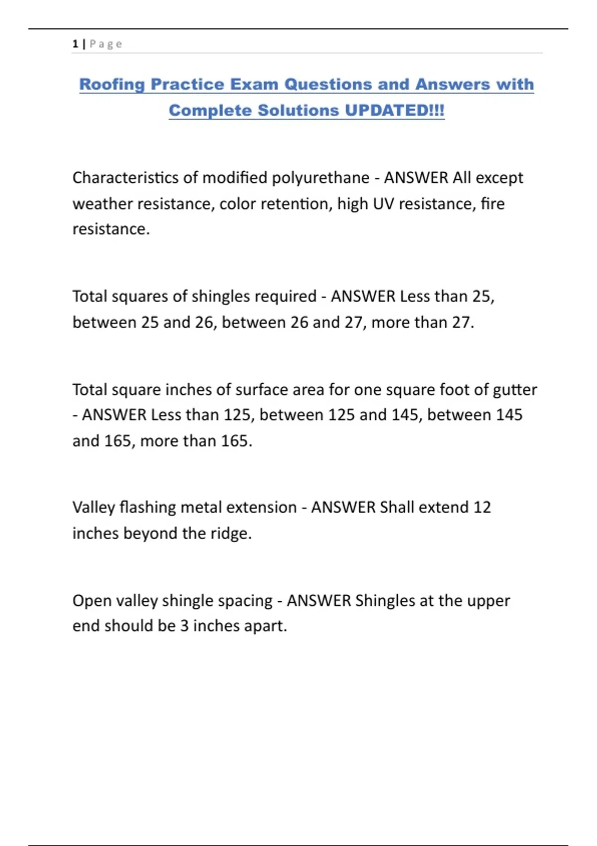 Roofing Practice Exam Questions and Answers with