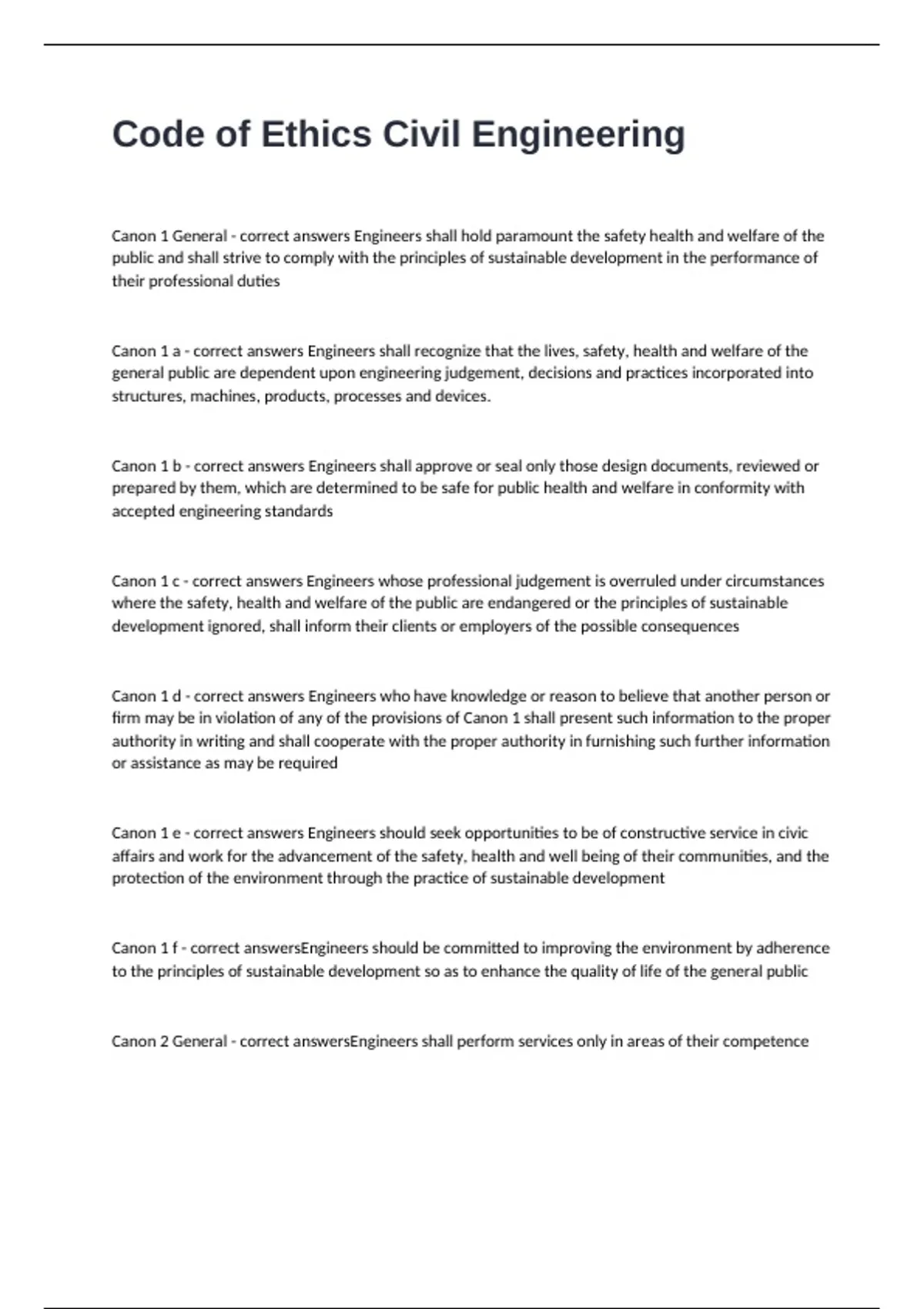 Canon 1 e - correct answers Engineers should seek opportunities to be of constructive service in civic