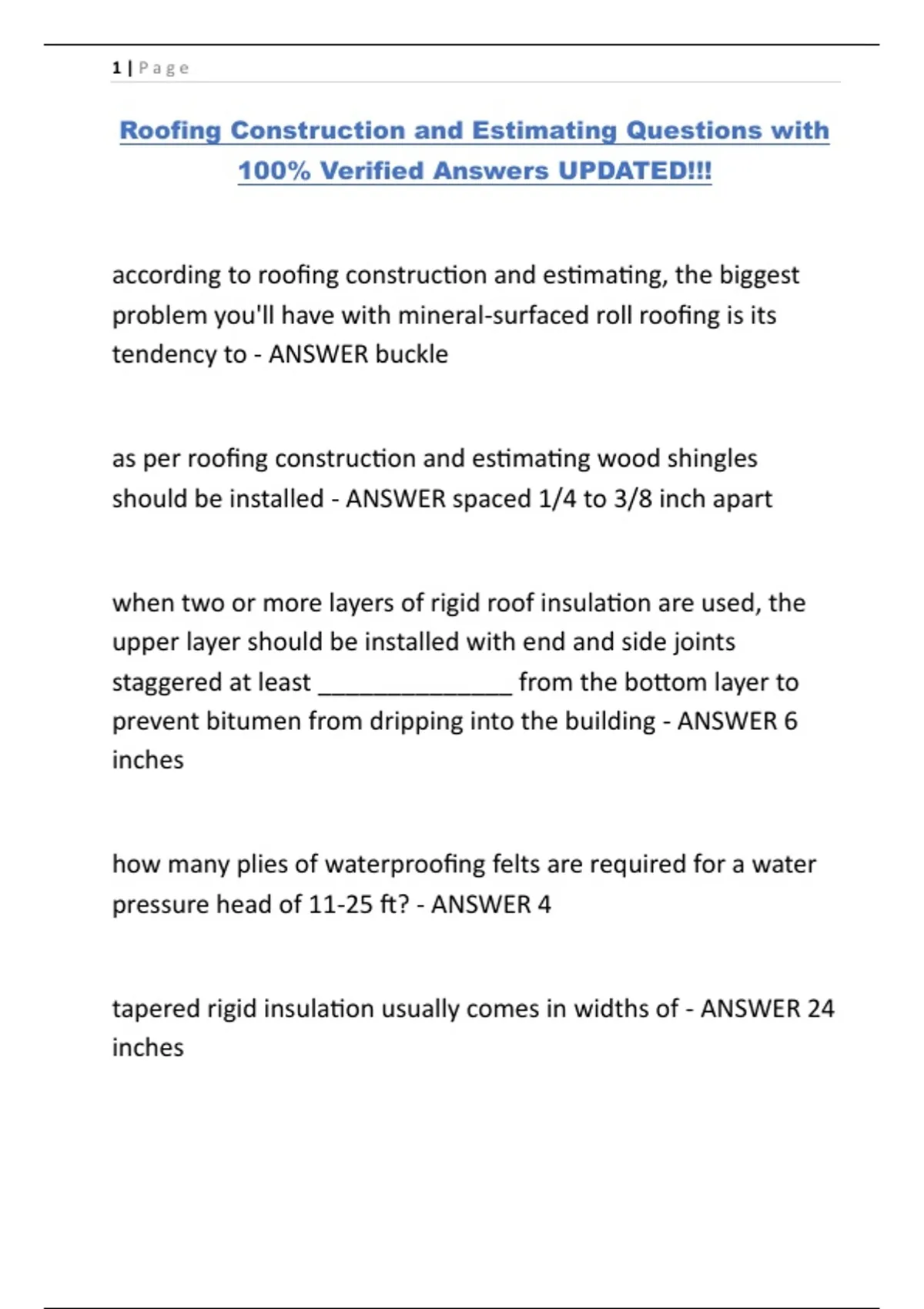 Roofing Construction and Estimating Questions with