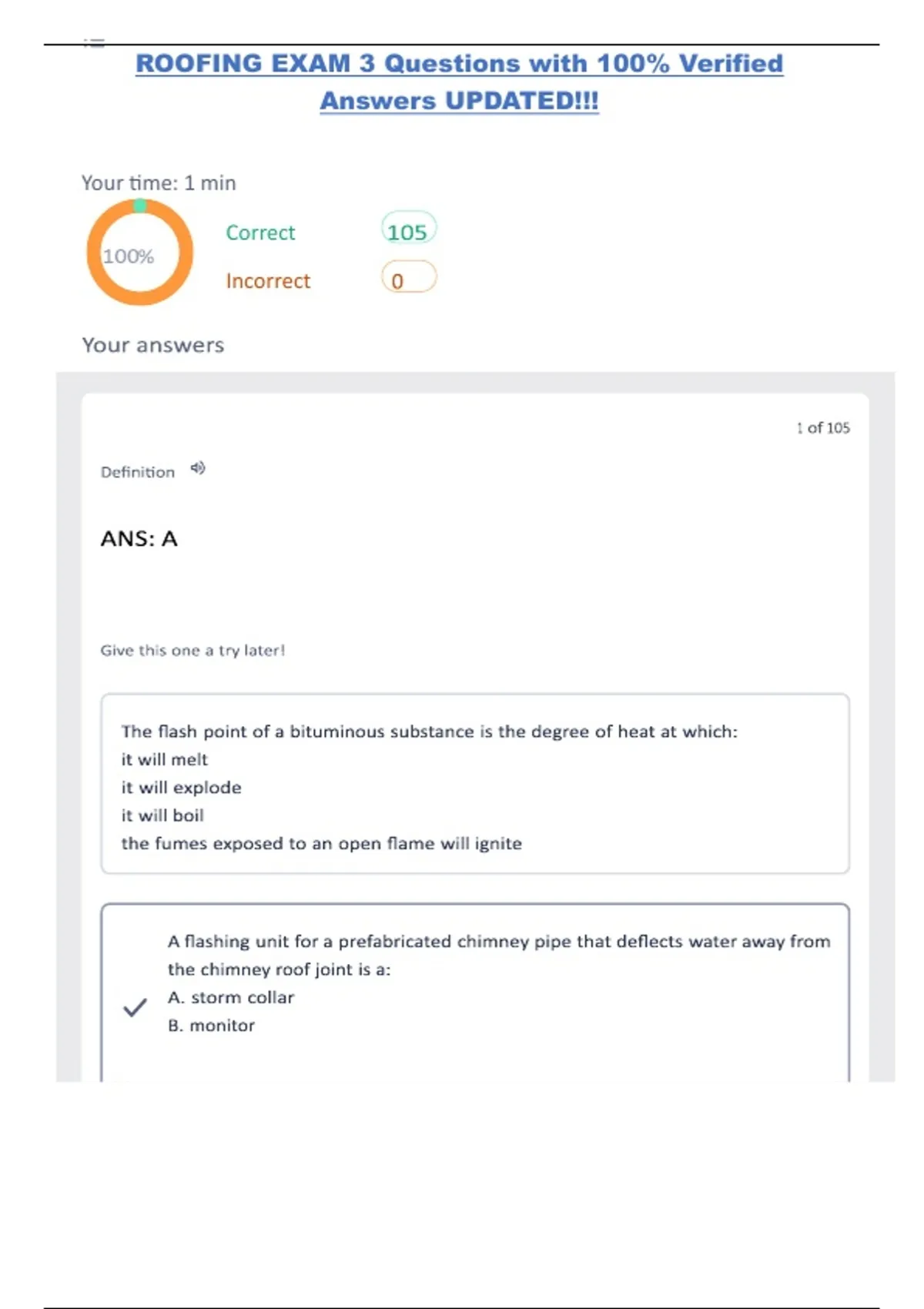 ROOFING EXAM 3 Questions with 100% Verified Answers UPDATED!!!.