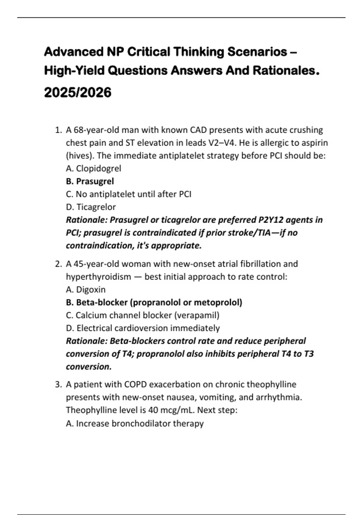 Rationale: Prasugrel or ticagrelor are preferred P2Y12 agents in