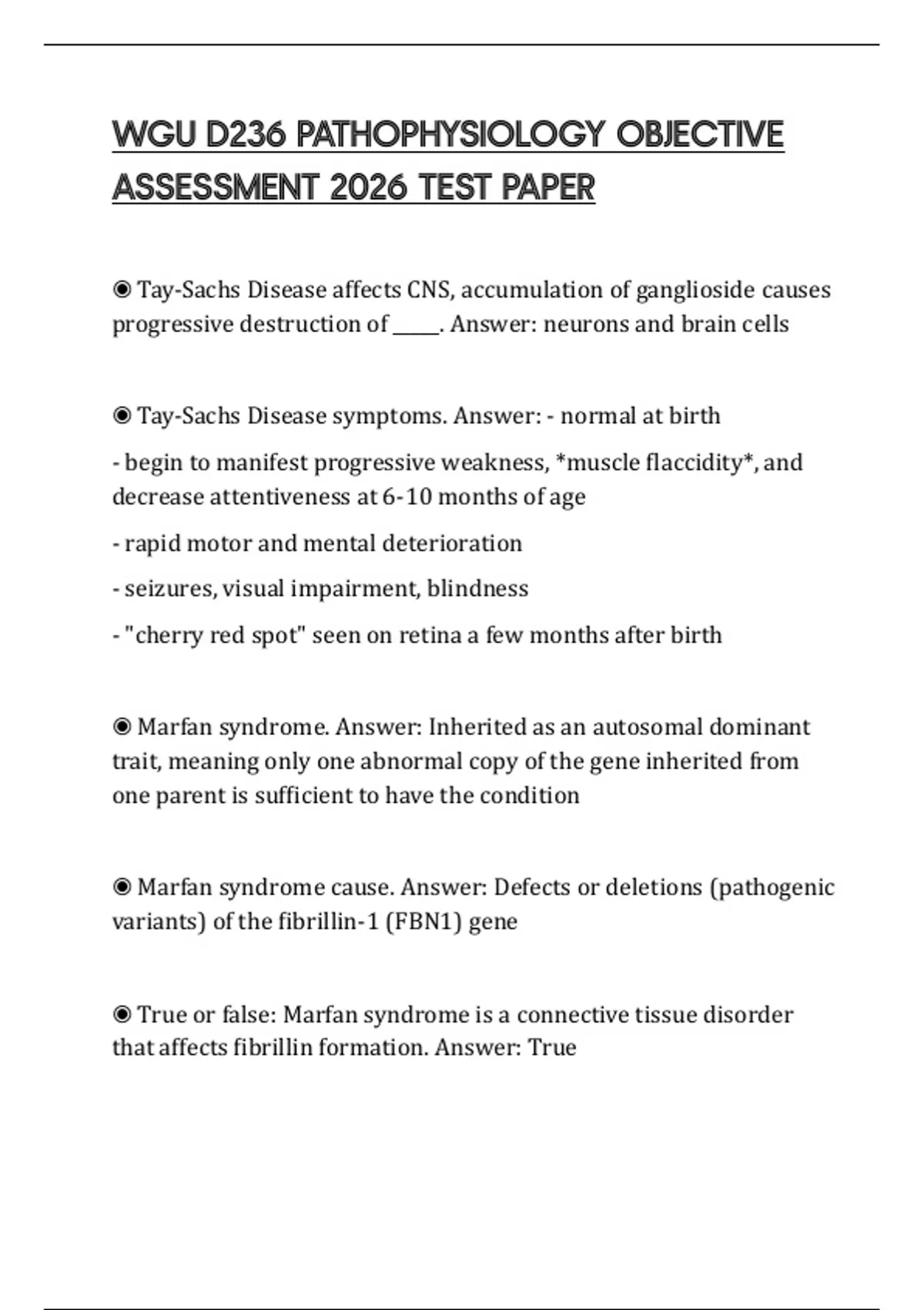 ◉ Marfan syndrome cause. Answer: Defects or deletions (pathogenic