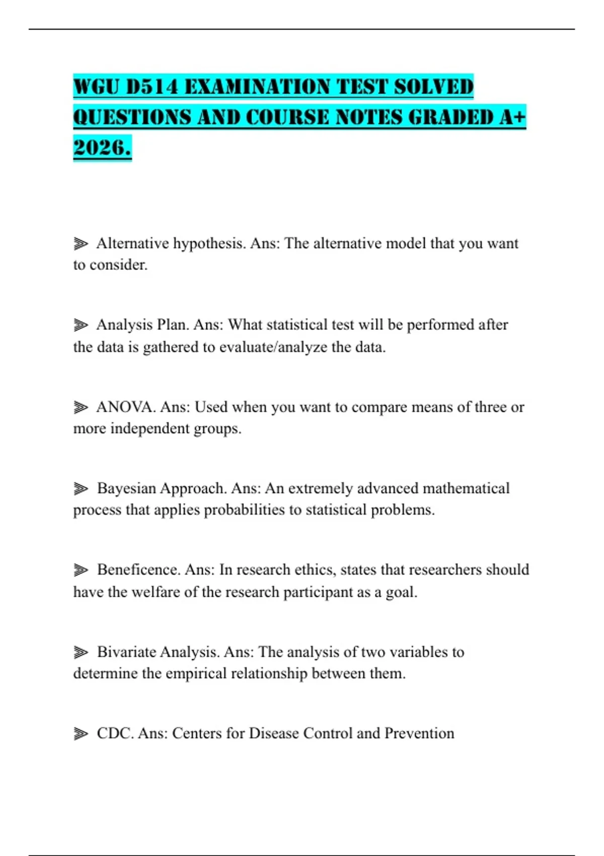 WGU D514 EXAMINATION TEST SOLVED QUESTIONS AND COURSE NOTES GRADED A+ 2026.