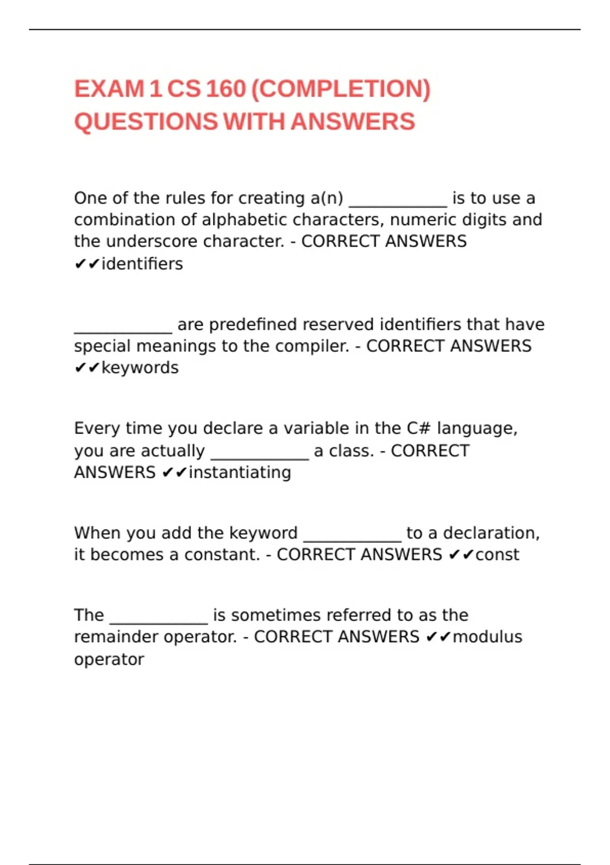 ANSWERS ✔✔instantiating |\