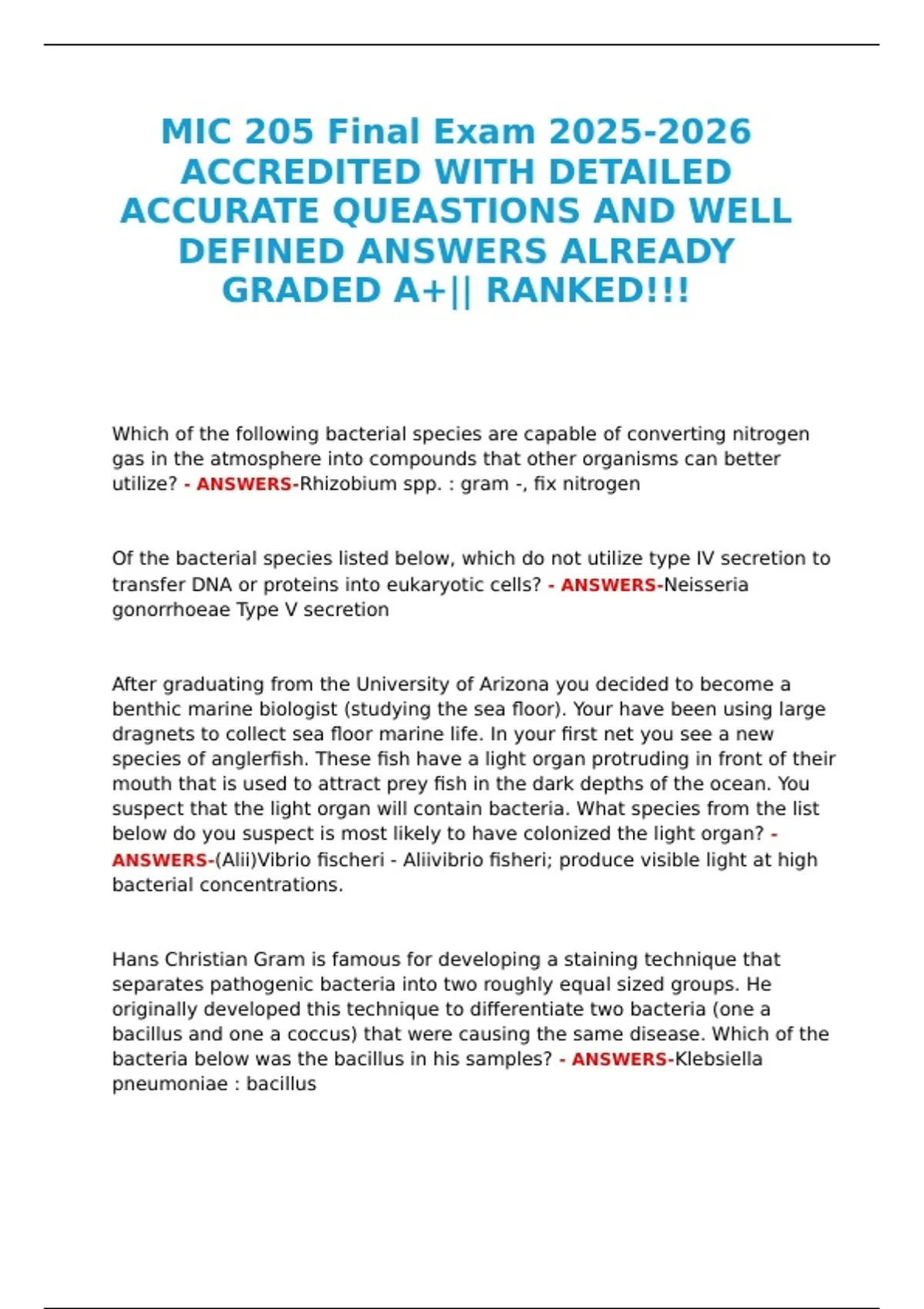 MIC 205 Final Exam 2025-2026