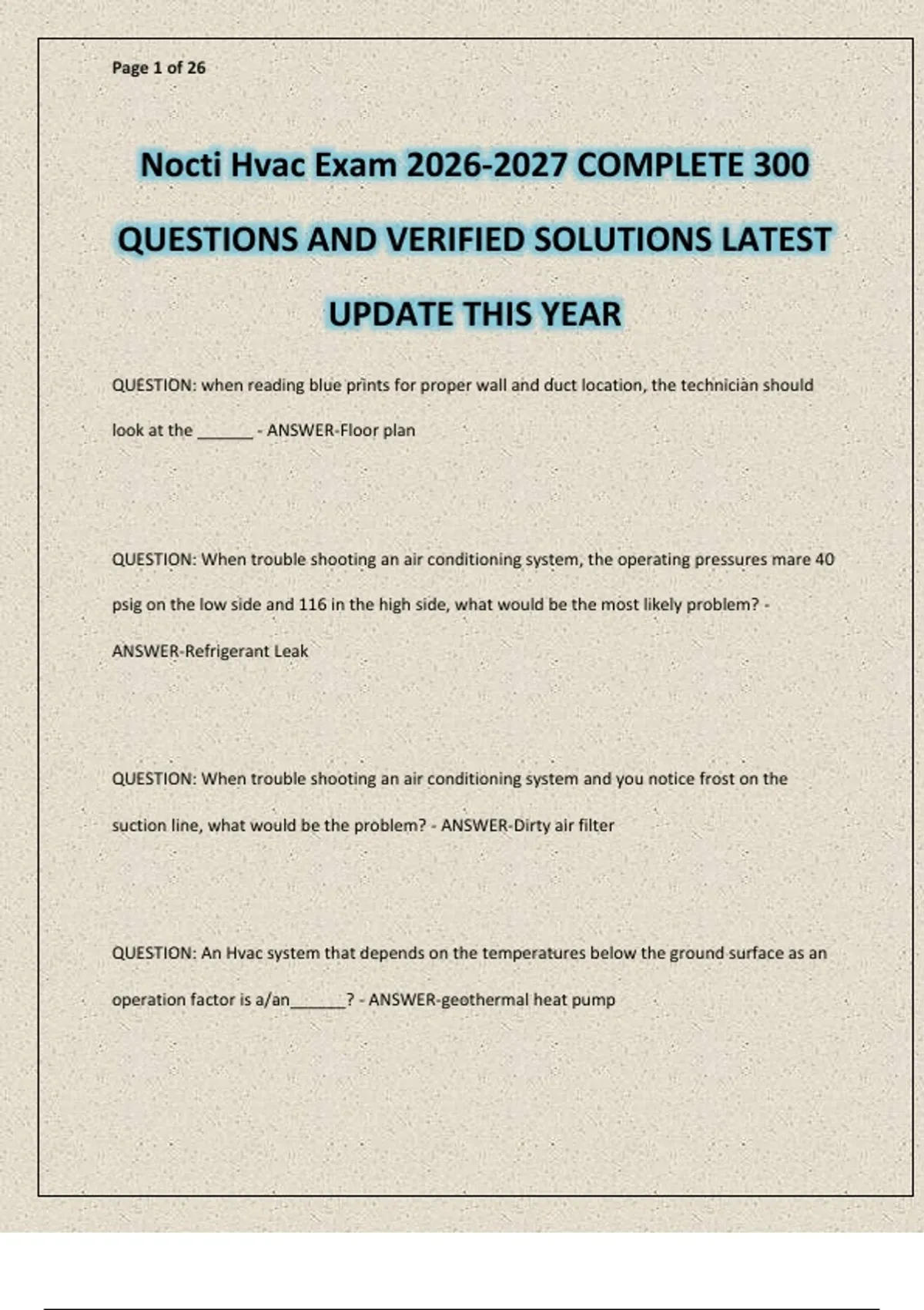 Nocti Hvac Exam 2026-2027 COMPLETE 300