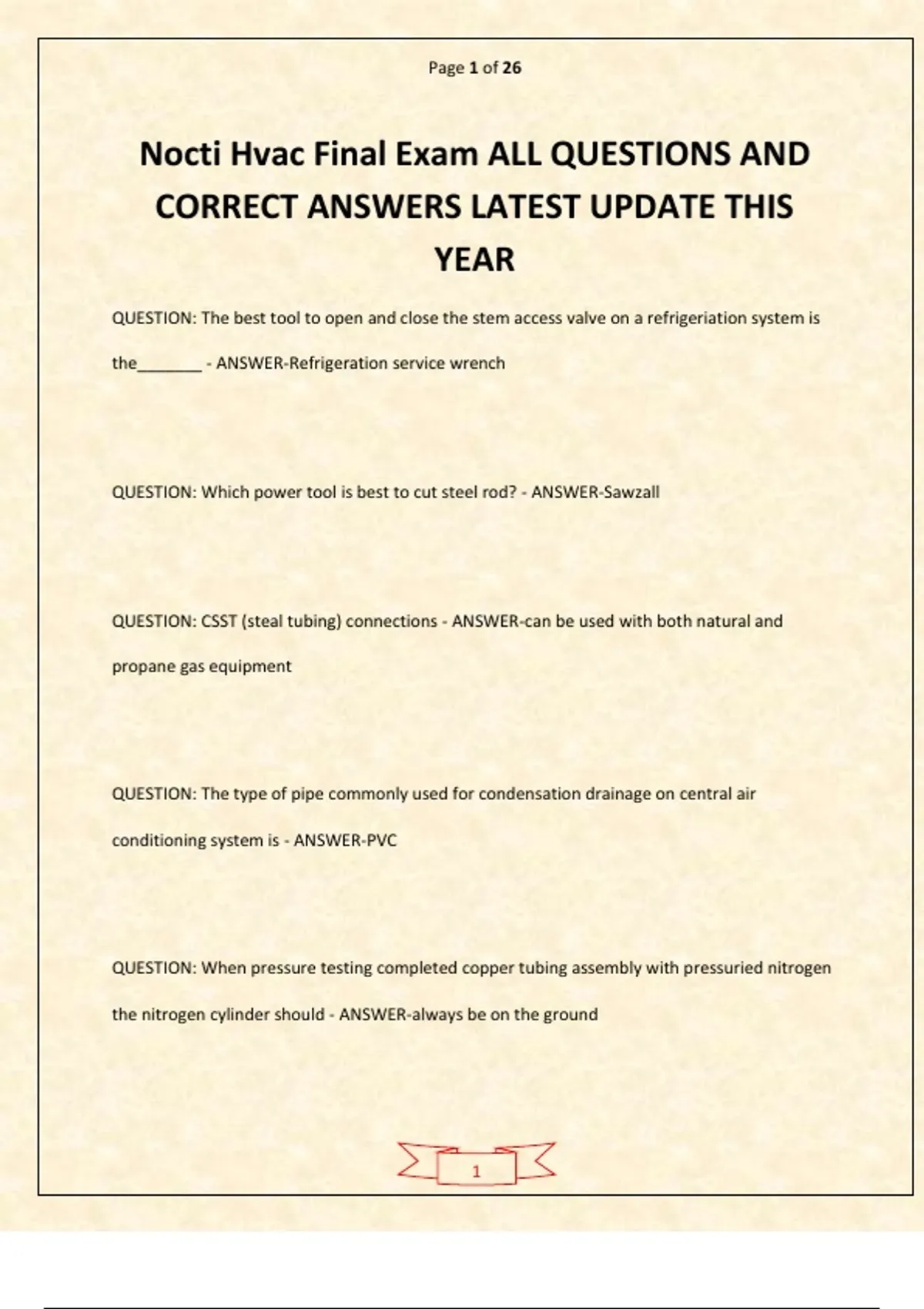 Nocti Hvac Final Exam ALL QUESTIONS AND