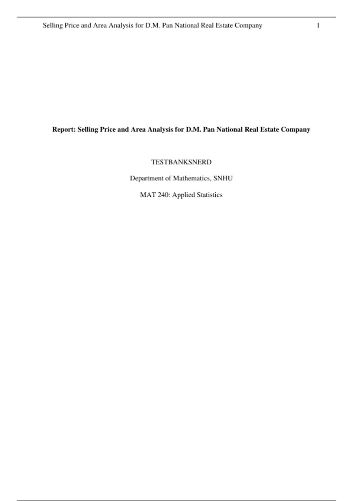 Selling Price and Area Analysis for D.M. Pan National Real Estate Company 1