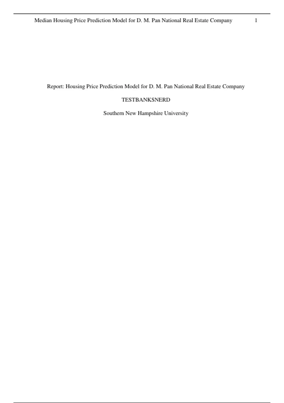 , Median Housing Price Model for D. M. Pan National Real Estate Company 2