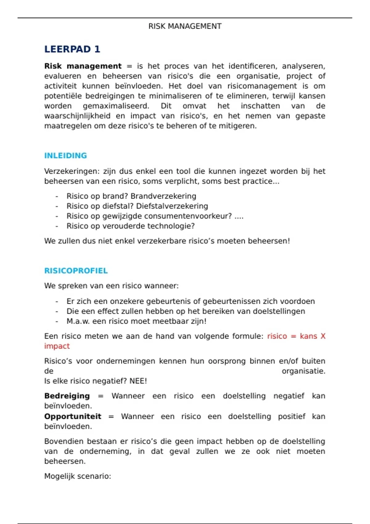 HET RISICOPROFIEL VAN DE ONDERNEMING