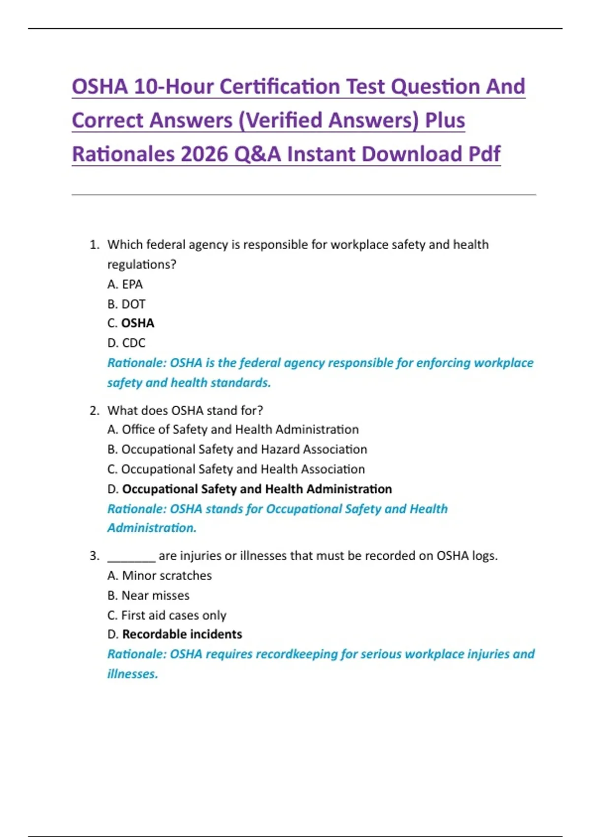 Rationale: OSHA’s main goal is to ensure safe and healthful working