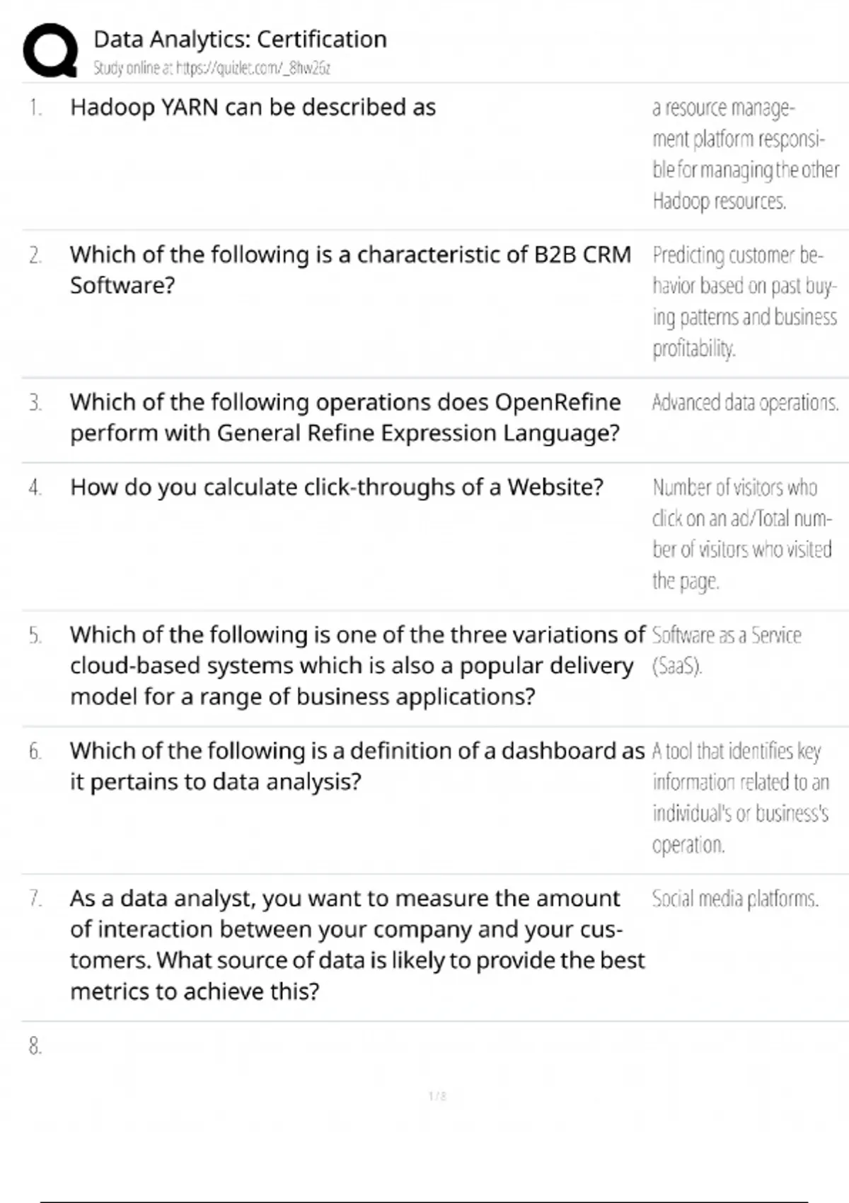 Data Analytics Certification / Google, IBM, Microsoft Exam Prep / 2025 Study Guide / Score 100% / Test Bank