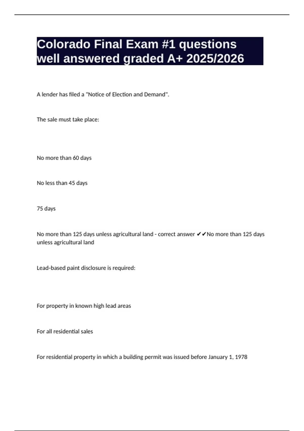 ,For residential property built before January 1, 1978 - correct answer ✔✔For residential