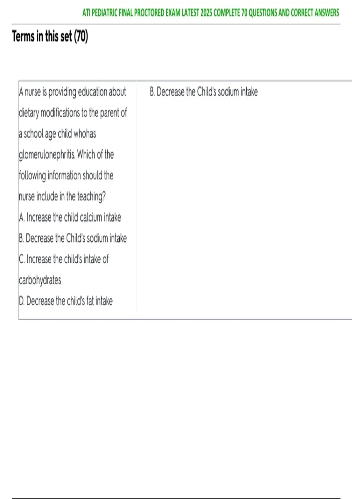 Prepare effectively for the ATI Pediatric Final Proctored Exam 2025 with this comprehensive study guide. This PDF includes 70 verified questions with correct answers, designed to help nursing students review key pediatric concepts and excel on the exam. Topics covered include child growth and development, pediatric assessment, common illnesses, medication administration, nursing interventions, patient and family education, and clinical decision-making. Ideal for self-study, focused exam preparation, and practice assessments, this guide helps candidates reinforce knowledge, identify gaps, and gain confidence before taking the ATI Pediatric Final Proctored Exam. Perfect for nursing students, pediatric nurses, and healthcare professionals, providing structured, reliable, and exam-focused study support.