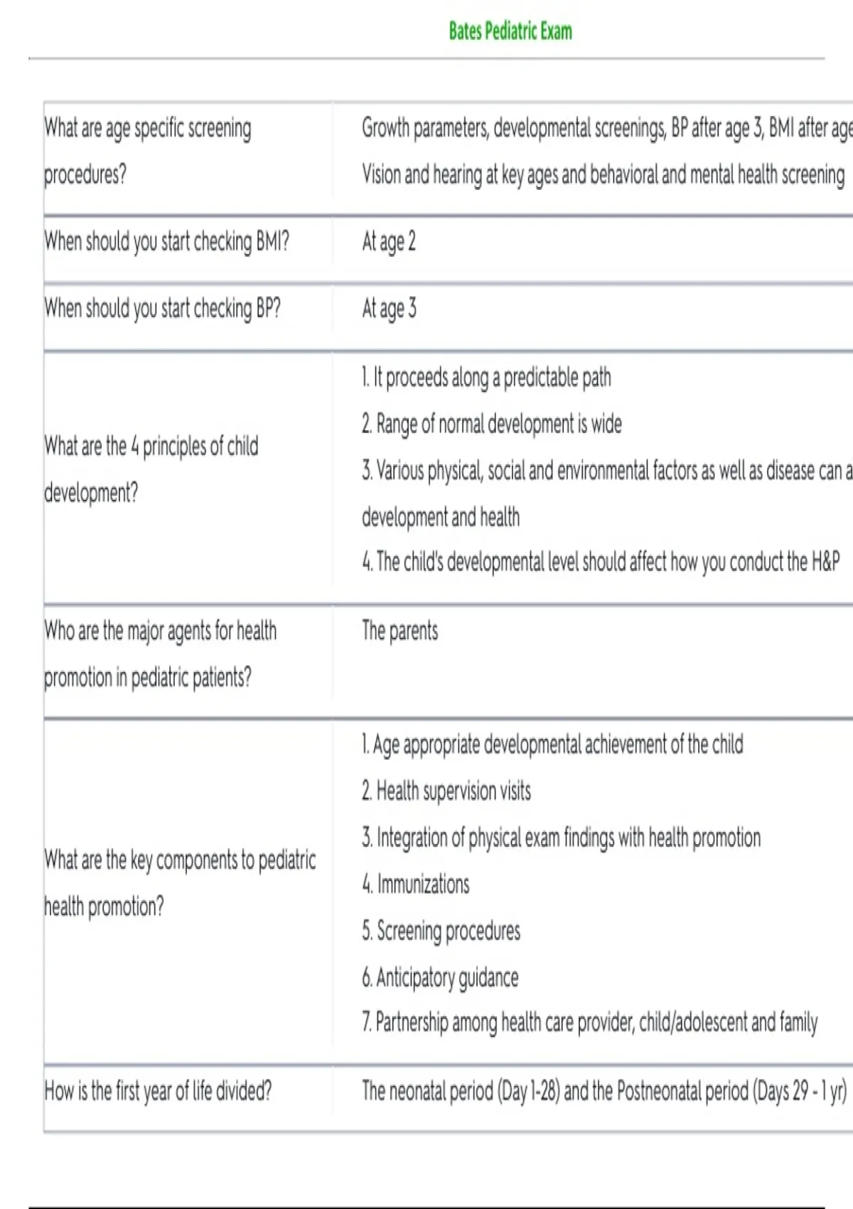 Bates Pediatric Exam