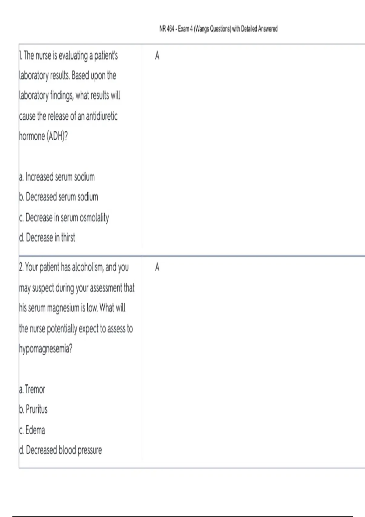 , NR 464 - Exam 4 (Wangs Questions) with Detailed Answered