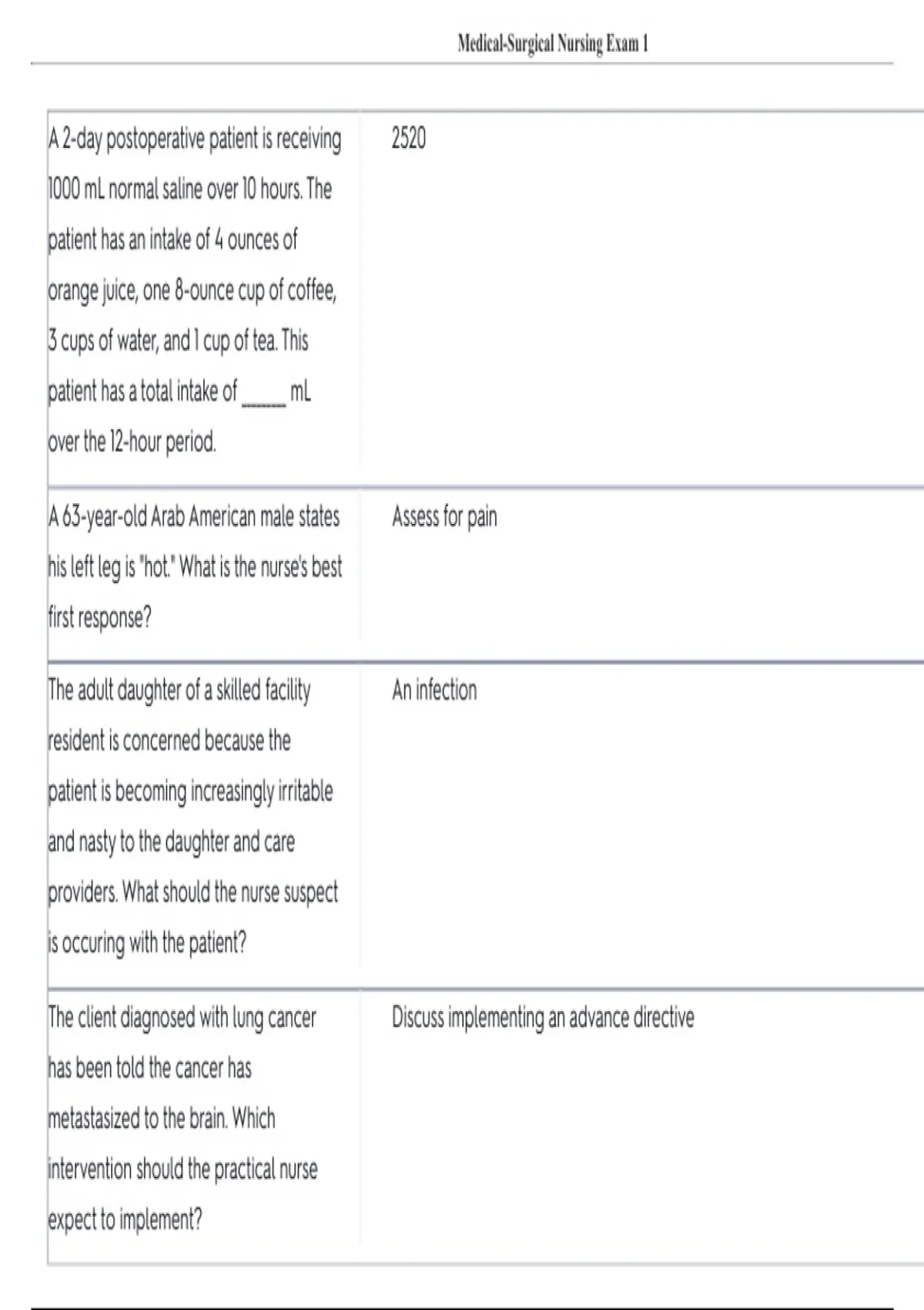 , Medical-Surgical Nursing Exam 1