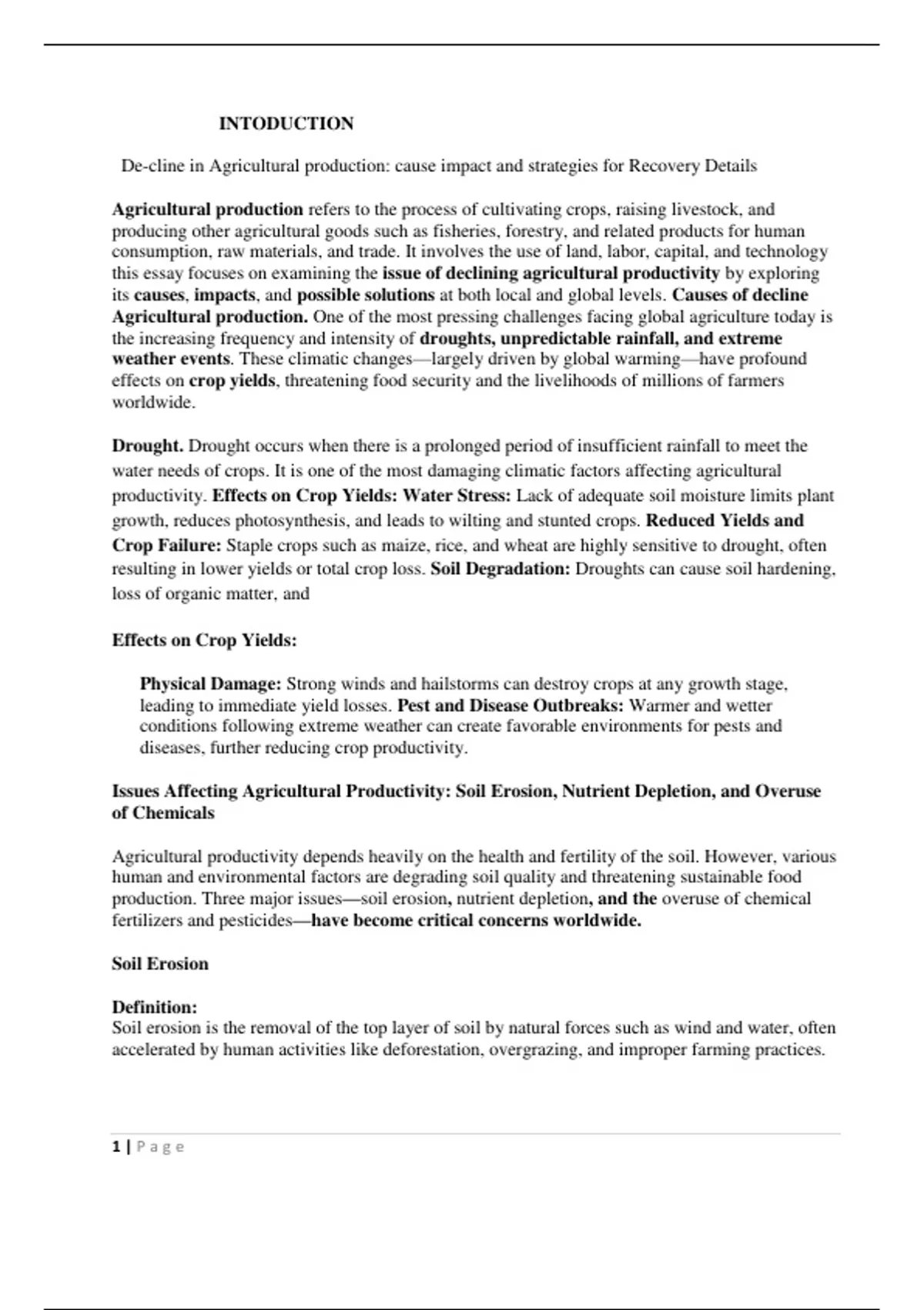 this essay focuses on examining the issue of declining agricultural productivity by exploring