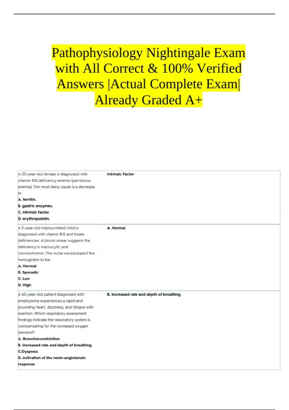 Pathophysiology Nightingale Exam with All Correct & 100% Verified Answers |Actual Complete Exam| Already Graded A+