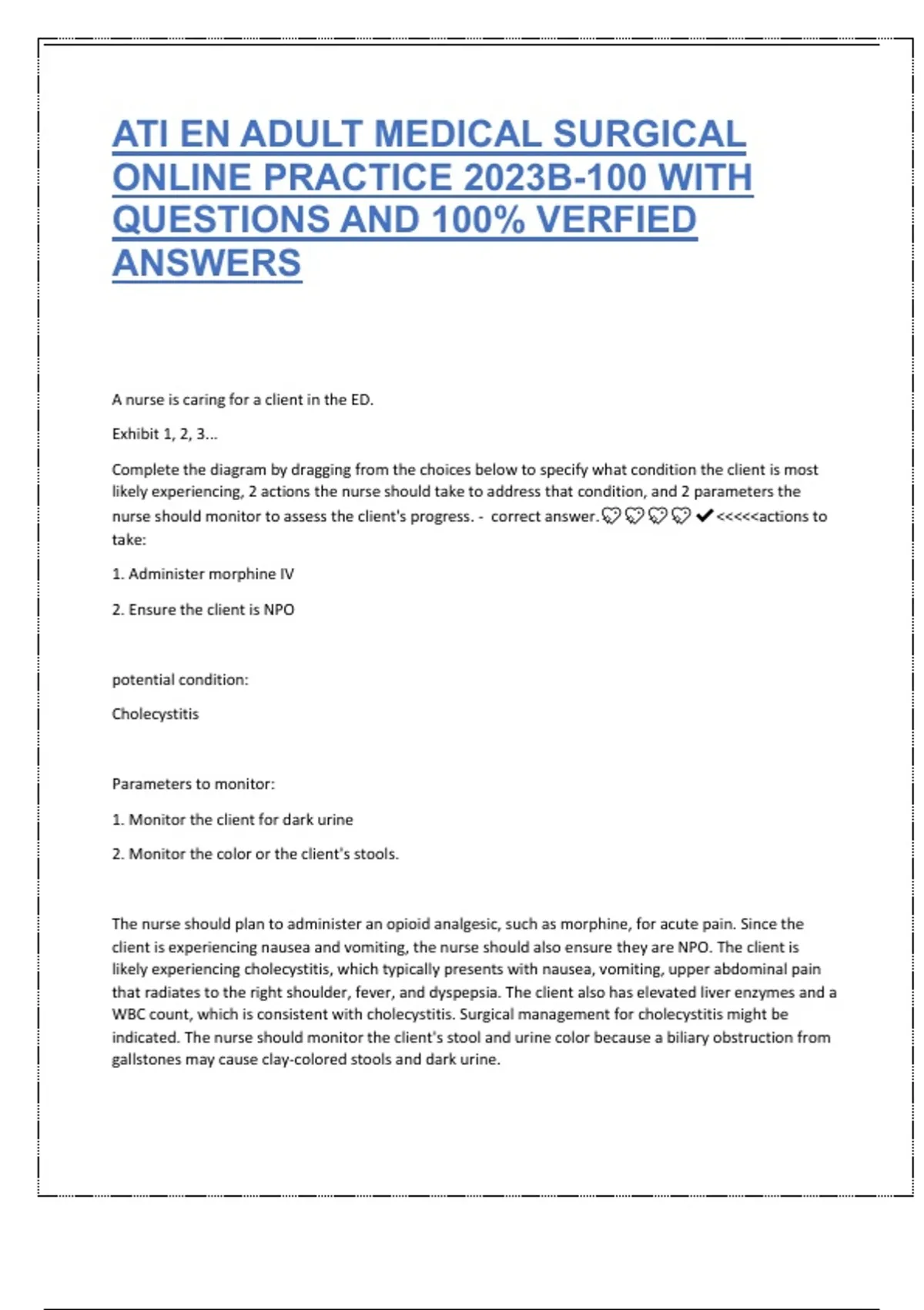 that radiates to the right shoulder, fever, and dyspepsia. The client also has elevated liver enzymes and a