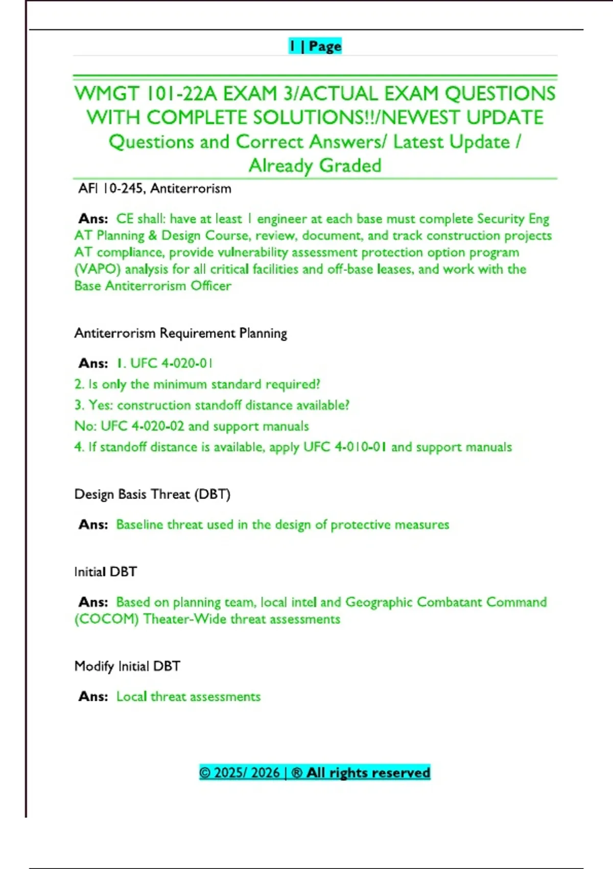 WMGT 101-22A EXAM 3/ACTUAL EXAM QUESTIONS WITH COMPLETE SOLUTIONS!!/NEWEST UPDATE Questions and Correct Answers/ Latest Update / Already Graded