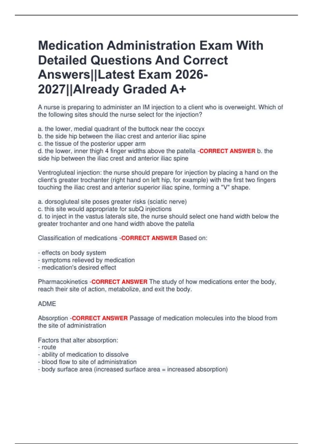 Distribution -CORRECT ANSWER After absorbed, the medication is distributed to body