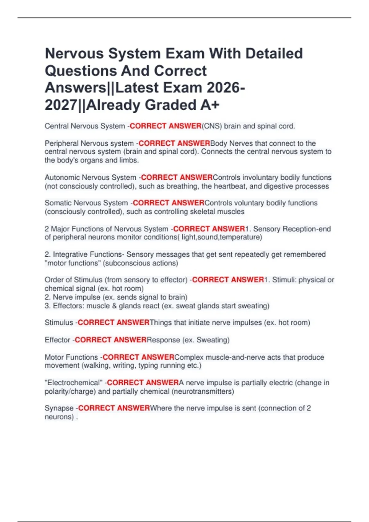 Central Nervous System -CORRECT ANSWER(CNS) brain and spinal cord.